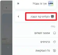 אחרי שהורדת ונרשמת לאפליקציה Laya כדאי להיכנס לתפריט>>קוד הטבה ולוודא שההטבה שלך מופיעה.
